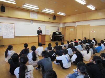 校歌斉唱では全校児童の元気いっぱいな歌声が多目的ホールに響き渡り、学校の雰囲気を明るく彩りました。話を聞く態度についても、みんながしっかりと集中して耳を傾けており、とても立派な姿を見せてくれました。3学期も子供たちが目標に向かって成長を続ける姿を楽しみにしています。