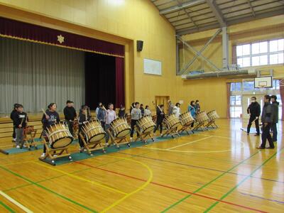 来月開催される「水かけ祭り」に向け、1月26日(月)から太鼓練習が始まりました。練習期間は約2週間で、地域の太鼓指導者の方や5年生の保護者の方を中心に練習・準備が進められています。今回、4年生女子が初めて太鼓練習に挑戦しています。初めての太鼓練習に少し緊張しつつも、みんな真剣に取り組んでおり、当日は5年生とともに力強い演奏を披露してくれることと思います。
