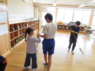 顔合わせの後は、班ごとに掃除場所へ移動し、協力しながら掃除を行いました。上級生が手本を見せたり、下級生にやさしく教えたりする姿が各所で見られ、学校をきれいにするだけでなく、思いやりの心も育まれる大切な活動となりました。