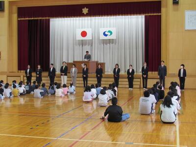 入学式では、1年生に「学校は、わくわくするところ、にこにこになるところ、きらきらになるところ」であるという話をしました。学ぶ楽しさや友達と関わる喜びを大切にしながら、一人一人が安心して過ごせる学校づくりを進めてまいります。また、1年生には三つの約束として、「挨拶をしっかりすること」「仲良くすること」「自分の命は自分で守ること」を伝えました。これらは全校の子供たちにとっても大切なことです。